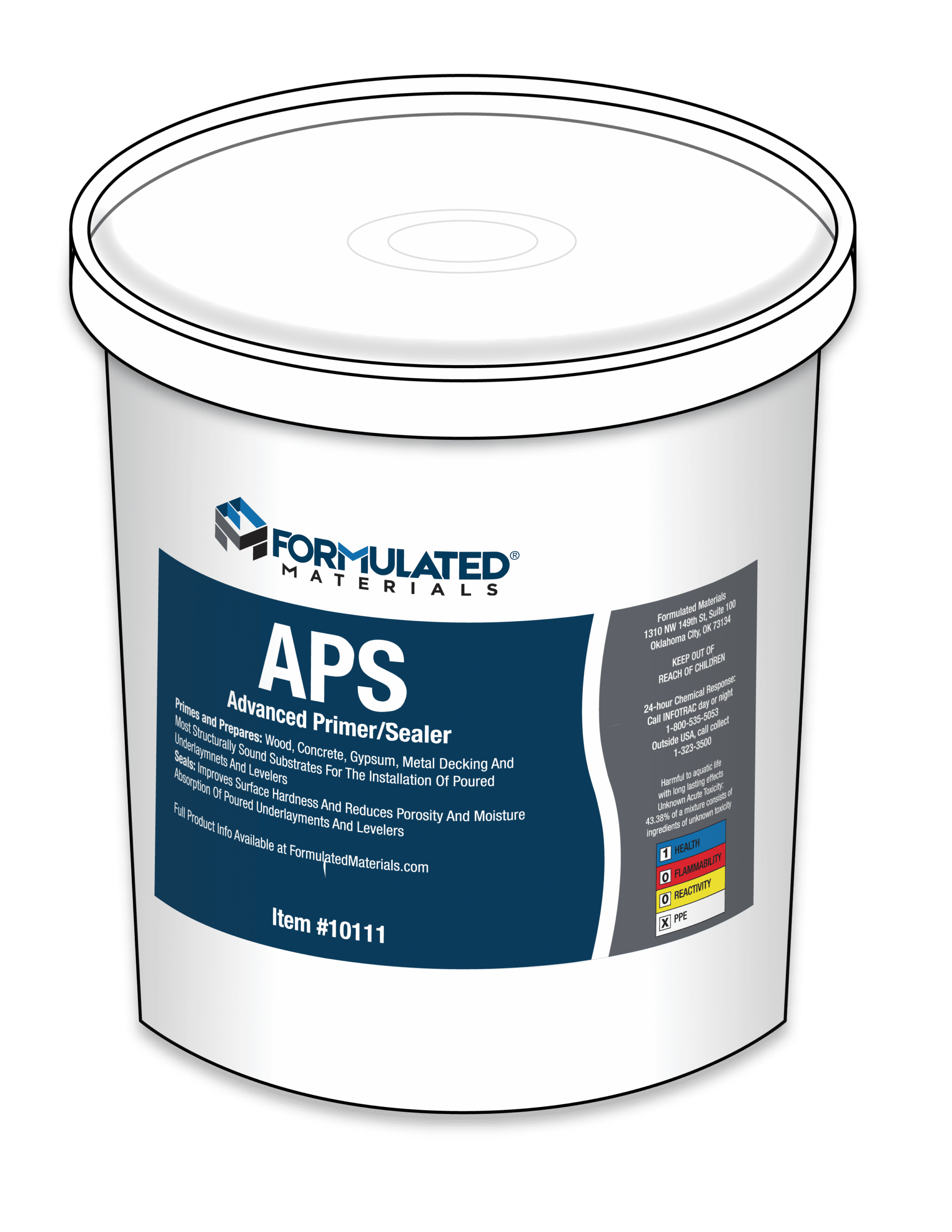 Formulated Materials® APS leveling concrete primer increases moisture and abrasion resistance. This leveling primer also increases the durability of underlayments and levelers when applied to fully cured surfaces. APS is easy to use and is appropriate for use with both porous and non-porous substrates when applied as a primer.