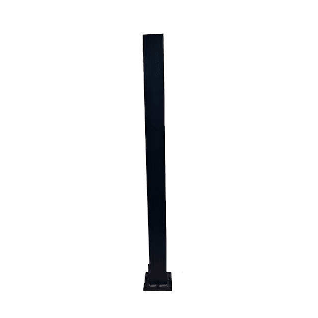 The Integrated Railing Post 3 1/2″ (With Flange) is a powder-coated extruded 6063-T6 aluminum post designed for direct surface-mount applications within the Integrated Railing System. The post features a 0.125″ wall thickness and a factory-welded base flange (mounting plate) with 3/8″ thick base plate and 5/16″ fillet weld all around. The flange includes 3/8″ diameter bolt holes in each corner for structural fastening.